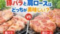 肩ロースは脂とコラーゲンが多く、煮込みやカツと相性良好ですが、急火で焼き切ると筋の収縮で反り返りやすいです。