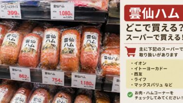 「雲仙ハム、どこで買えるんだろう」と、近所のスーパーをいくら探しても見つからず、諦めてしまった方は多いのではないでしょうか。結論からお伝えすると、雲仙ハムはスーパーでの取り扱いが限られており、百貨店・公式通販・ふるさと納税が主な購入ルートで...